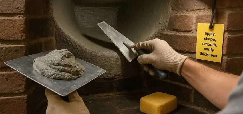 We remove weak mortar, reset or replace firebrick, and parge the smoke chamber smooth to steady airflow. These upgrades in Founders Parc, Euless create a calmer burn and protect nearby finishes from heat and soot.